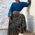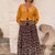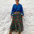 Falda larga de gasa con bordados en la cintura, con espejitos. Cintura ancha, bordada en la parte delantera y de elástico de nido de abeja en la parte de atrás. Falda en paneles para aumentar vuelo y forro interior.